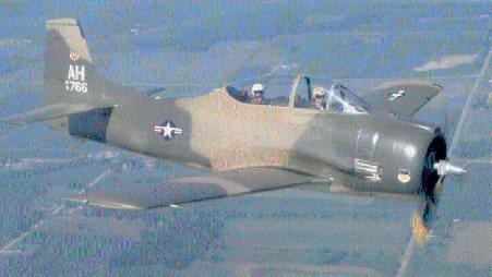 This is an exceptionally well restored T-28 in Tactical Air Command camoflage. The back seat pilot is a former RLAF pilot who has over 2,500 hours in the airplane.